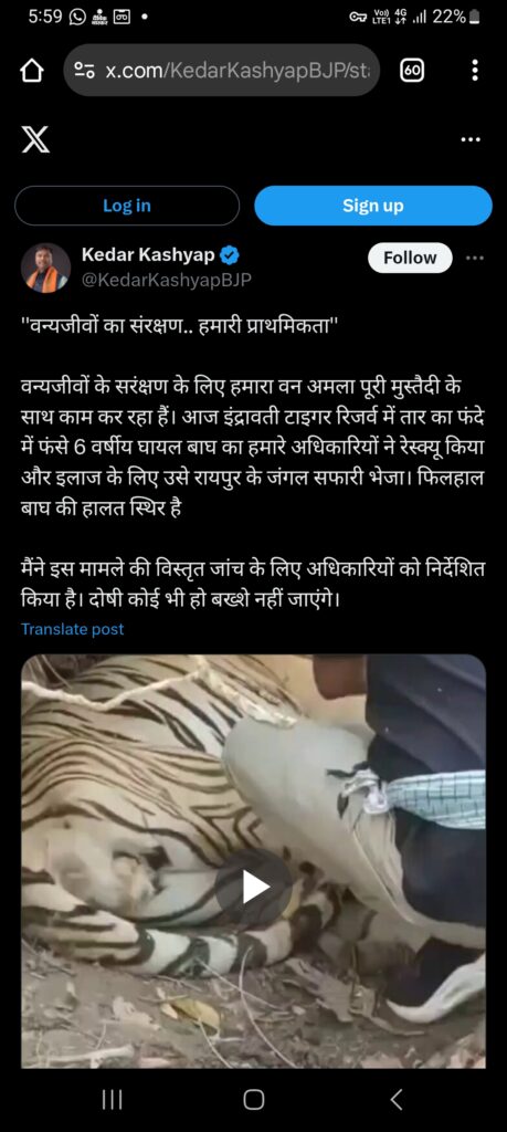 - इंद्रावती टाइगर रिजर्व के एक घायल बाघ की पीड़ा और इंसानी ‘संरक्षण’ पर सवाल