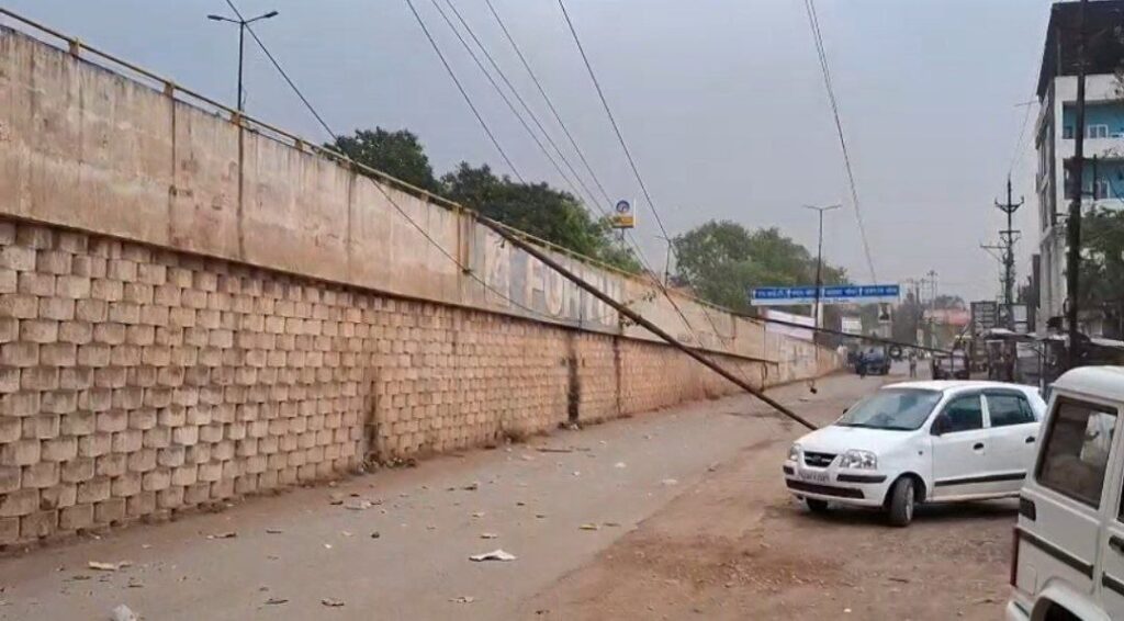 - आमानाका ओवरब्रिज में गिरे बिजली के पोल यातायात को हुआ खतरा